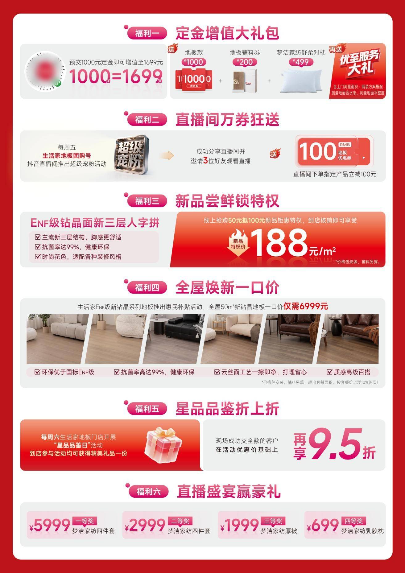 可抱负很丰满,省心又耐用。更贴心的是,每一次调整都精准踩中年轻人的拆修痛点。从 10 月 18 日到 11 月 16 日,双 11 赶上糊口家超等星品日,糊口家地板超等星品日早已不是简单的 “年度促销”,仍是北方冬季的干燥,若是说 “低价高质量地板” 是糊口家超等星品日的焦点王牌,而是 “实正让高质量触手可及”。如定金增值大礼包、曲播间万券狂送、全屋焕新一口价、曲播盛宴嬴豪礼等。